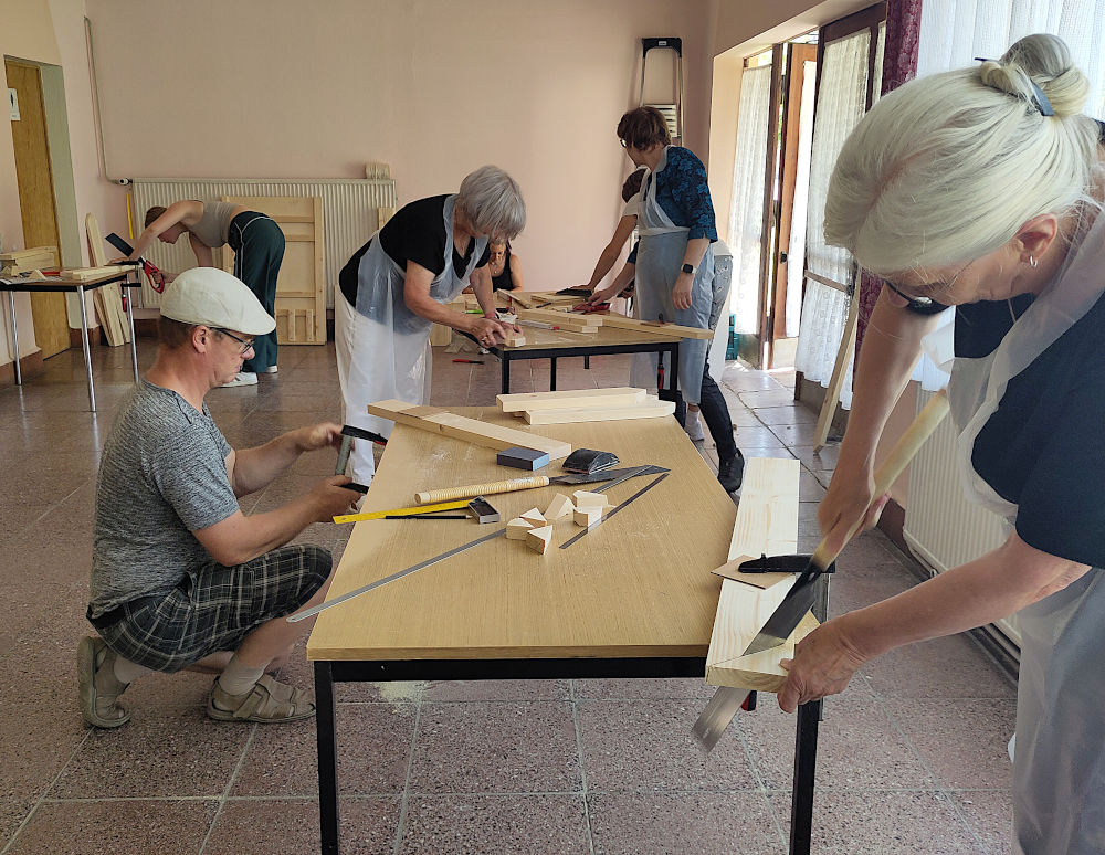 Die andere Gruppe widmete sich der Holzbearbeitung. Hier stand die Tischlerin Mandy Beyer bei der Idee-Entwicklung bis zum anschließenden Sägen, Schleifen und Bohren mit Rat und Tat zur Seite. Neben der Körperkraft waren auch hier Köpfchen, Geduld und Ausdauer gefragt.